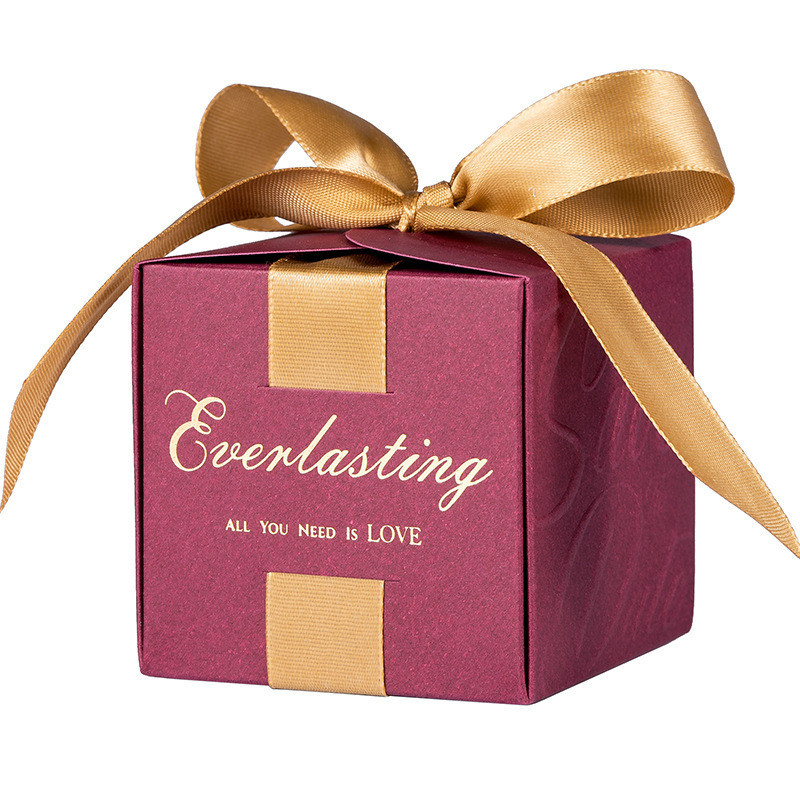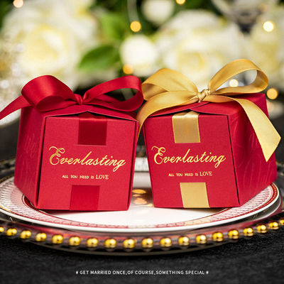 Product name: Red Paper Gift Box Folding With Ribbon Square Cardboard Packing Boxes Wedding Candy