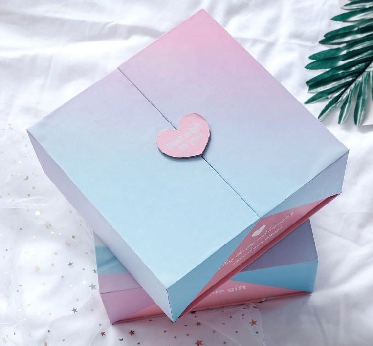 Creative double open pink & light blue gradient square box Wedding Candy Chocolate Doll Small Gift Boxes