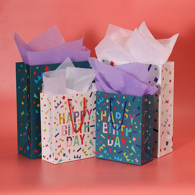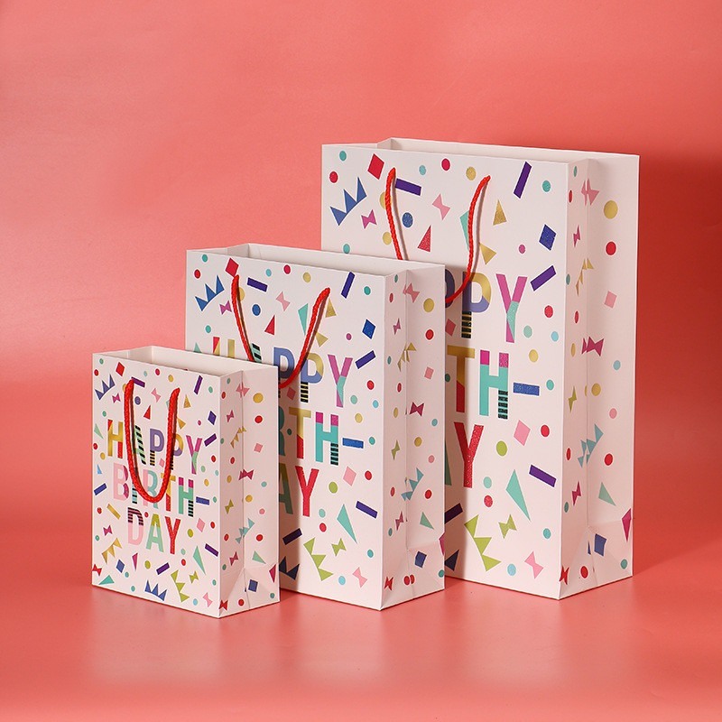 Cardboard Paper Gift Packing Bag Happy Birthday Pattern Environmental Friendly