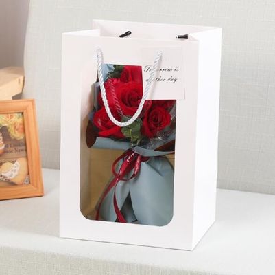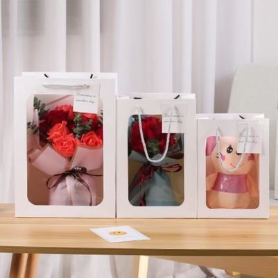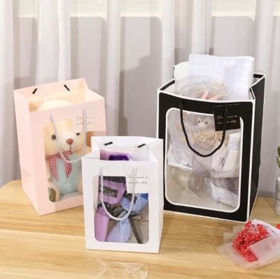 ISO9001 230gsm Cardboard Gift Bags With Clear Window Rectangle Shape