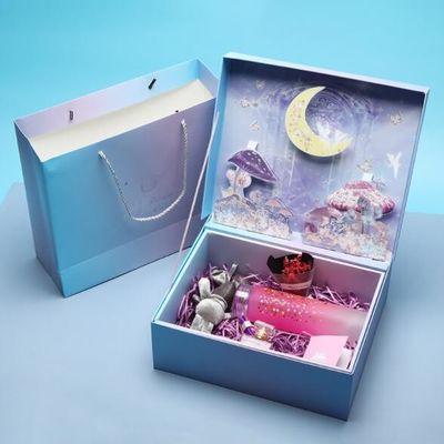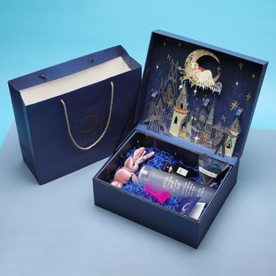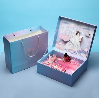 Hard Cardboard Paper Gift Packing box Environmental Friendly Three-dimensional pattern pink blue