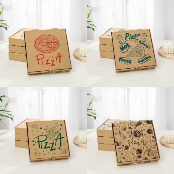 Oil-Proof Kraft Paper Pizza Packaging Box Custom Logo Environmental Friendly Food Packing