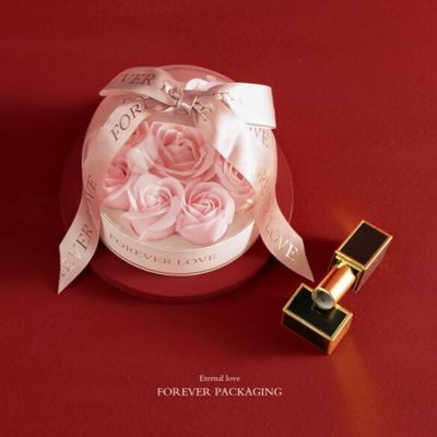 Round Shape Rose Flower Jewelry Box Creative Gift Box Eternal / Forever Love Sapphire Pink