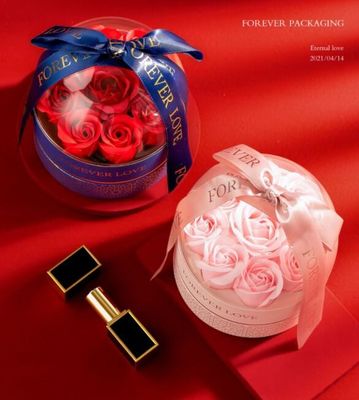 Rose Flower Small Jewelry Packaging Boxes Round Shape Art Paper Ribbon 122*122*130cm