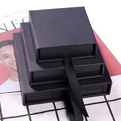Square Jewelry Box / Black Drawer Box With PE Film Custom Logo Dust-Proof Environmental Friendly