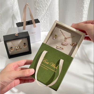 Grass Green Paper Square Jewelry Box / Drawer Box Custom Logo Environmental Friendly Packing