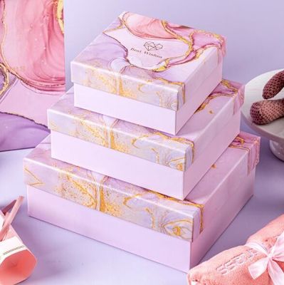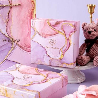 Pink Cardboard Gift Packaging Boxes UV Varnish Art Paper Gift Box With Gold Powder