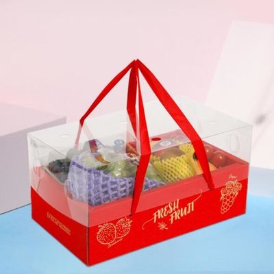 ISO9001 Cardboard Paper Fruit Packing Box With PET Transparent Lid Ribbon