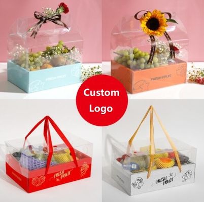 Unique Fruit Packing Box With PET Transparent Lid & Ribbon Custom Logo Eco-Friendly