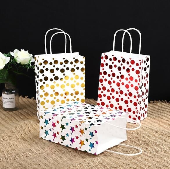 Paper Bag With Handle & Bronzing Pattern Environmental Friendly Packaging Custom Logo