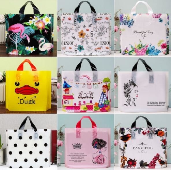 Custom Logo / Size Unique PE Printing Packing Bag With Handle Recycle Shopping Bag