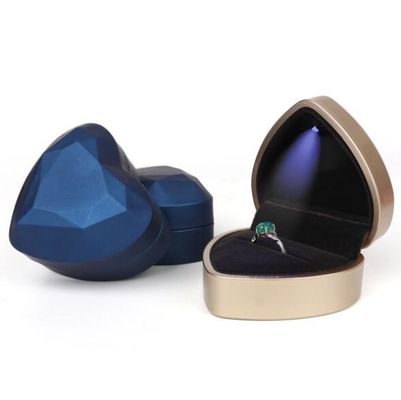 Heart-Shaped Jewelry Box With Small LED Light Custom Logo Gold Navy Pink Black Gift Box