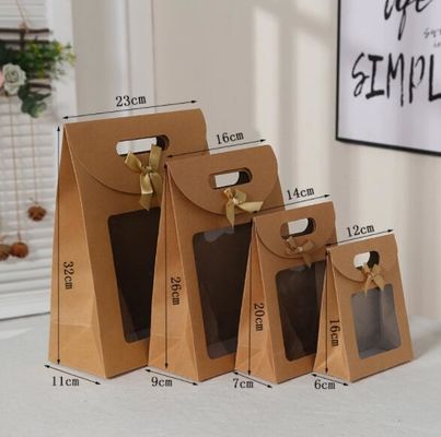 Bow-knot Die & Cut Handle Kraft Packaging Bags With Opening Window Brown Stand up pouch