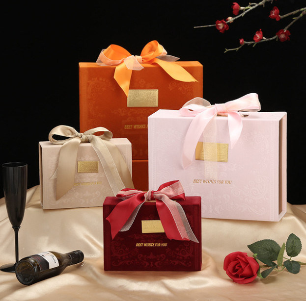 | Name | Velvet Book Shaped Gift Box Luxury Paper Gift Box Cardboard Packaging Red Pink Orange |