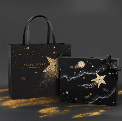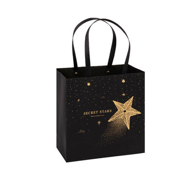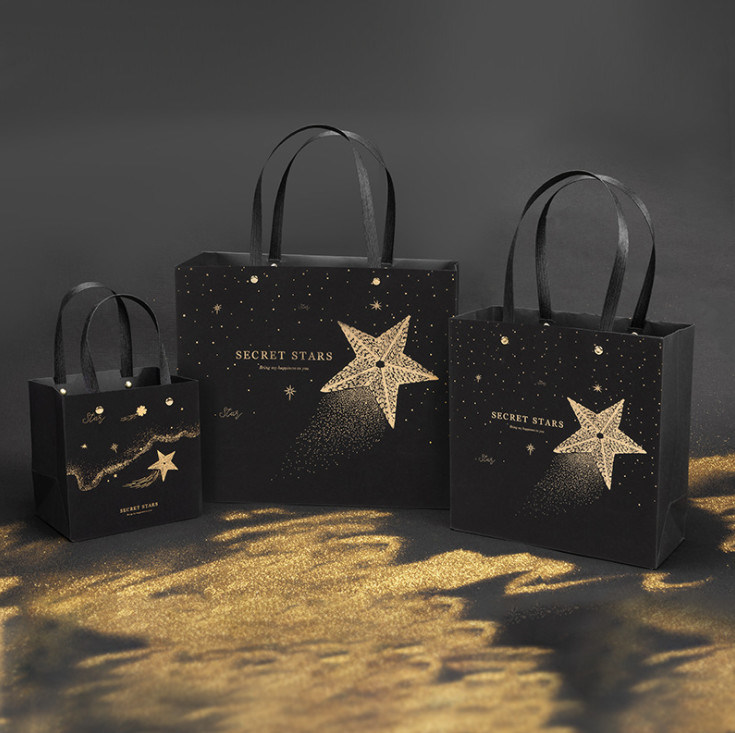 Black Luxury Stamping star Shopping bag with Handle Customized logo Printed Tote Paper Gift Bags