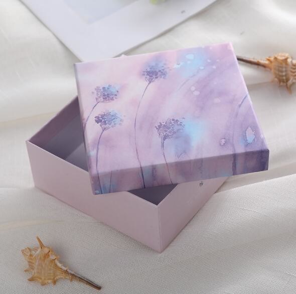 square Cardboard Gift Packaging Boxes flesh style pattern green blue purple storage 12*12*5cm
