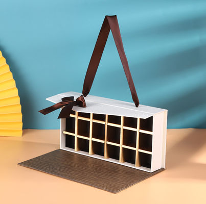 Chocolate Candy Cardboard Gift Packaging Boxes Book Shape Flip With Bow Knot 18 Lattices Inside