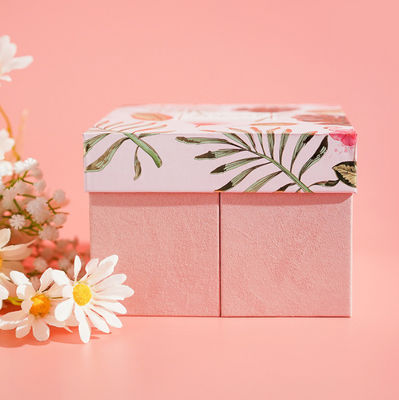Square 2 Layer Cardboard Gift Packaging Boxes First Layer Could Be Opened Pink Gray