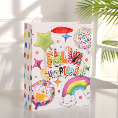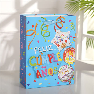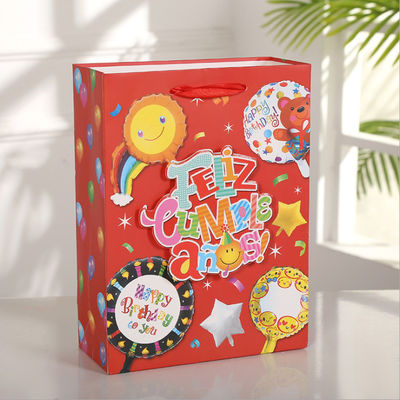210gsm Cardboard Paper Bags Ribbon Handle For Children'S Day Party Blue Red