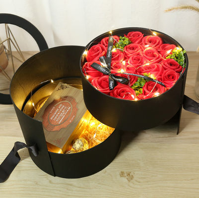 Exquisite Gift Packaging Boxes Romantic Round Double Layer Rotating Soap Flower Box