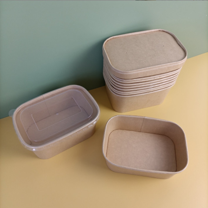 Kraft Paper Takeaway Lunch Box Biodegradable Salad Fruit Food Container With Lid
