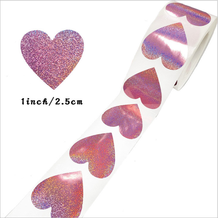 Laser Heart Pink Holographic Sticker Glitter Sealing Labels 500pcs/Roll For Gift Box Packaging