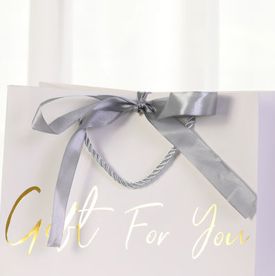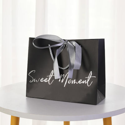 Shopping Boutique Paper Gift Bags 300gsm With Bronzing Printed Logo Ribbon Handle